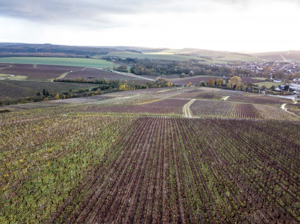 Ну и мой недавний случай. Приехали в Шабли — специально чтобы на квадрике полетать по этому винному региону и все заснять. Остановились в одном месте — полетали туда-сюда. Потом поехали на самый крутой виноградник Шабли — Гранд Крю Лекло, который расположен прямо напротив городка Шабли. Вот он.