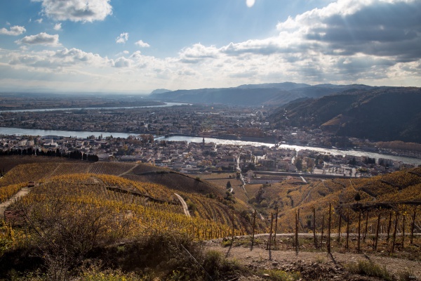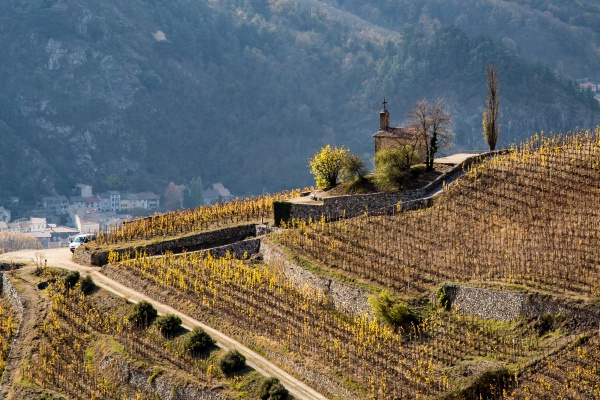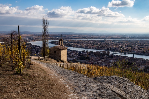 Ехали мы с из Бургундии в Испанию и посматривали по карте, куда бы нам заехать по дороге, но только чтобы надолго не зависать, а то до дома ехать было 900 километров. Шатонёф-дю-Пап был, в общем-то, недалеко, но до него надо было пилить километров двадцать в сторону, так что решили не заезжать. А потом Руденко выяснил, что у нас практически по пути — легендарный холм Эрмитаж, знаменитейший аппелласьон долины Роны. Фактически — винная Мекка. И что если мы туда не заедем, сказал Руденко, то потом никогда себе не простим. А так как съезд с трассы для посещения холма Эрмитаж занял у нас буквально десять минут, мы могли потратить часик на то, чтобы полазить по этому святому месту и пофотографировать.