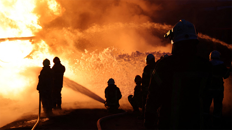 Пожарные на месте удара российского беспилотника и ракеты в Полтавской области Украины (Фото: Государственная служба Украины по чрезвычайным ситуациям/Reuters)