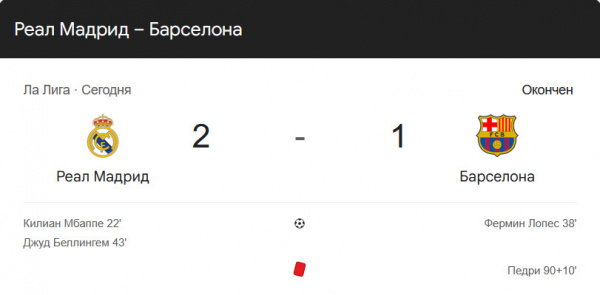 Сегодня была игра El Clásico — «Барса» с «Реал Мадридом». Мы ездили к друзьям в другой город, там за обедом пытались предсказать результат матча, именно я оказался абсолютно прав, предсказав 2:1 в пользу «Реала», друзья не дадут соврать.